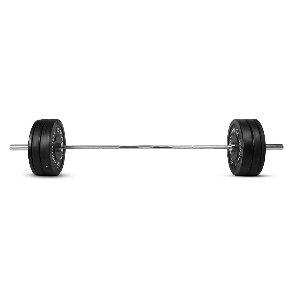 The 80 Kg Olympic Rubber Bumper Plates with Barbell is designed to work out the whole body, from legs and back when squatting to arms and abdominal when performing chest press.