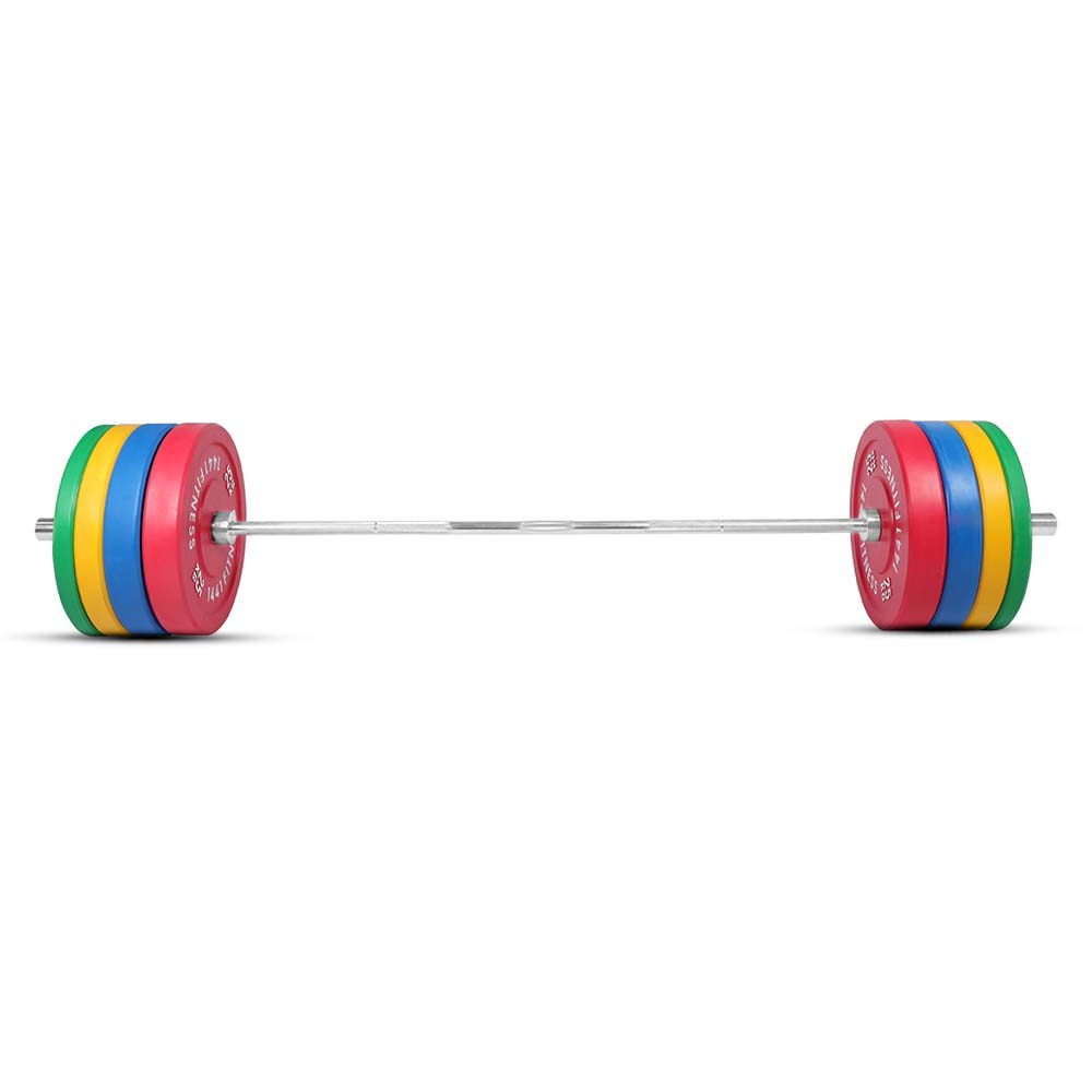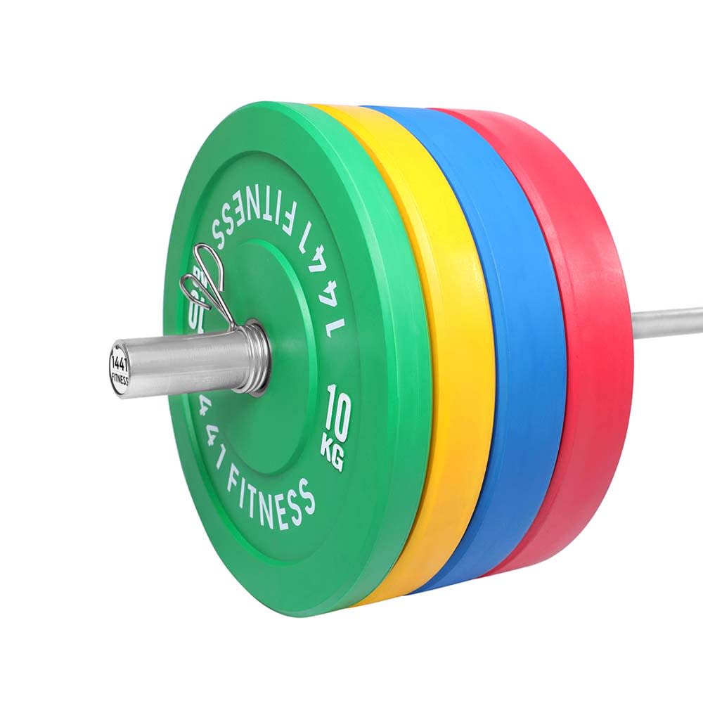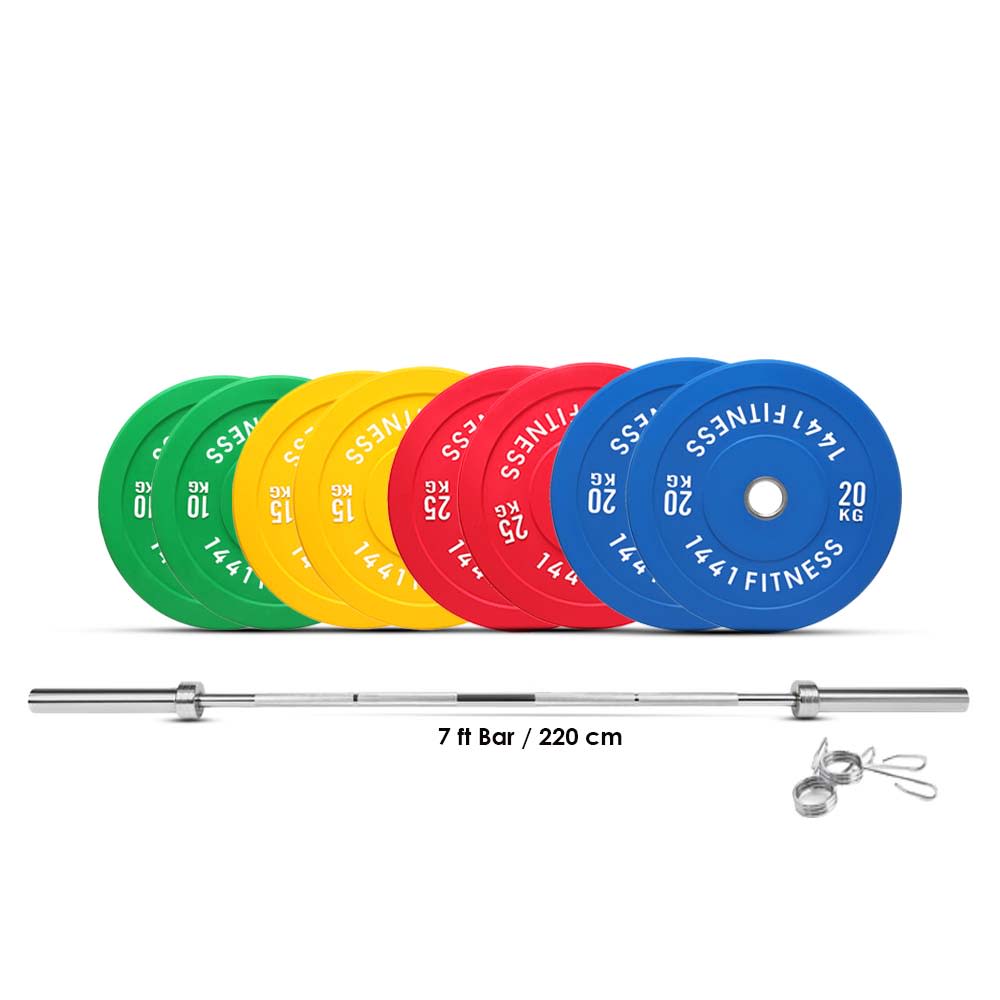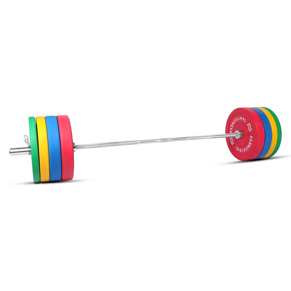The 1441 Fitness 160 Kg Olympic Rubber Bumper Plates with Barbell is designed to work out the whole body, from legs and back when squatting to arms and abdominal when performing chest press.