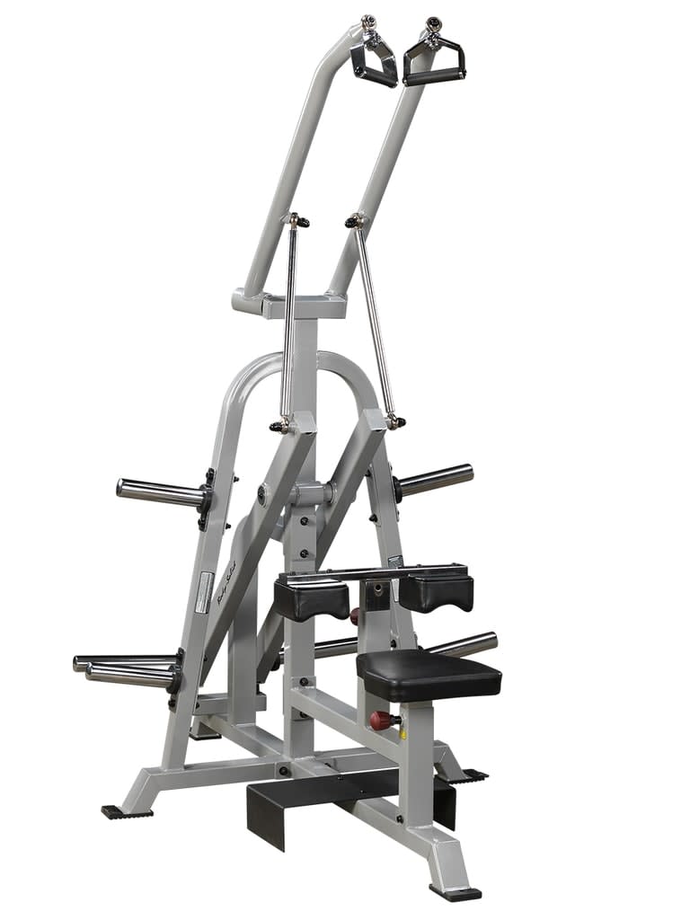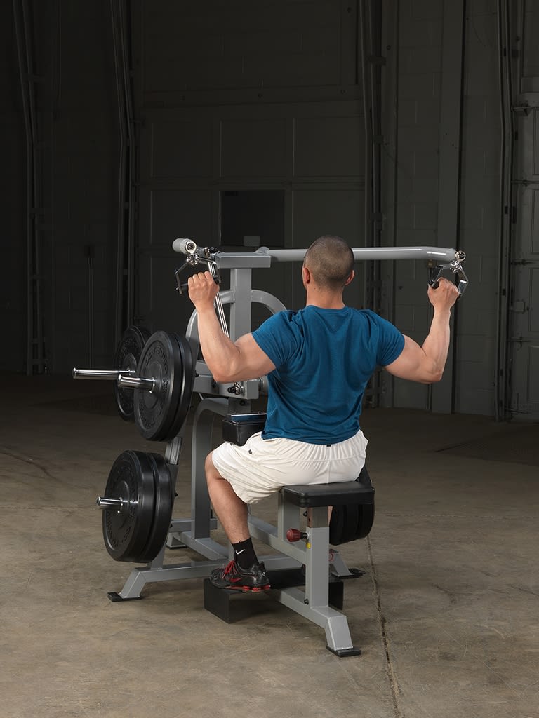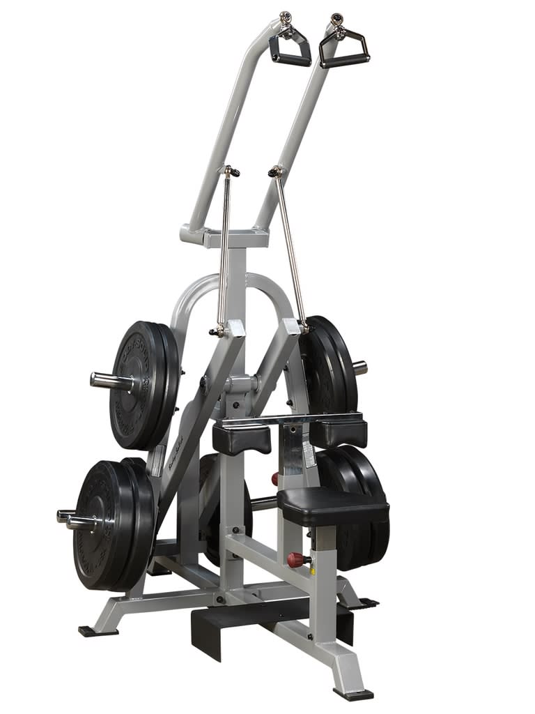 • The LVLA Leverage Lat Pulldown has adjustable press arms to fit all size users, with gas assisted start positions. It also offers independent, unilateral arm action for balanced muscle development.