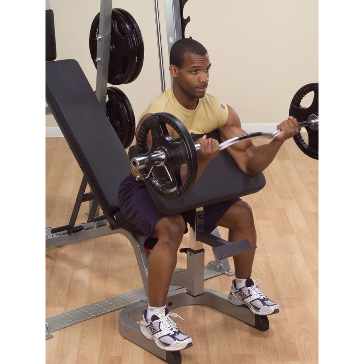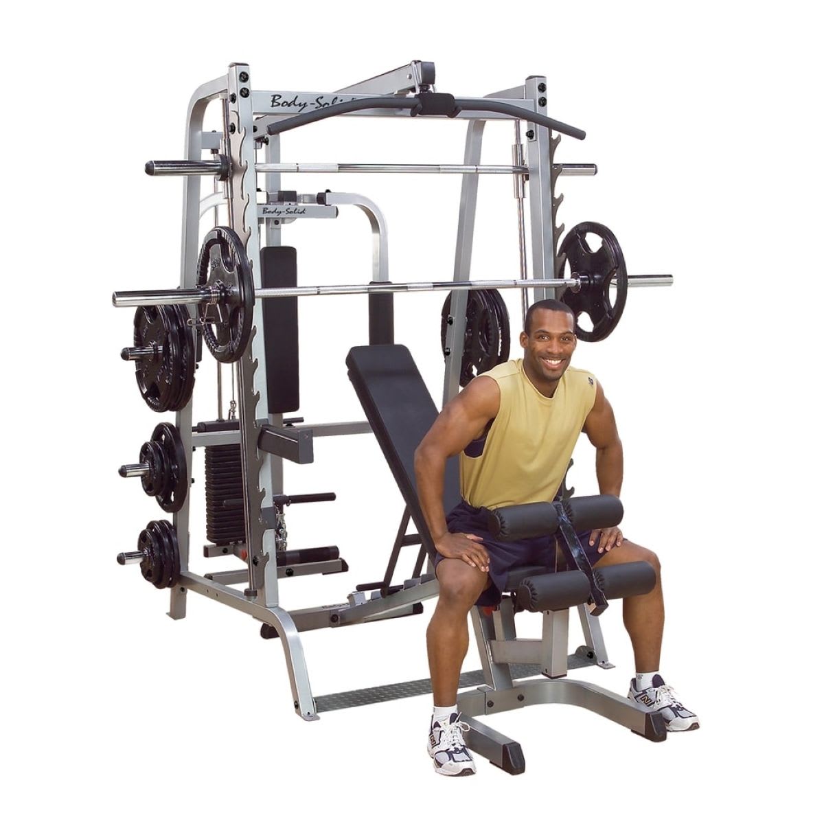 EXERCISES : Sit-Ups, Bench Press, Incline Press, Decline Press, Upright Row, Shoulder Press, Standing Military Press, Wide Grip Front Lat Pullup, Close Grip Front Lat Pullup, Bent Over Row, Shoulder Shrug, Biceps Curl (standing), Squat, Seated Calf Raise, Standing Calf Raise, Calf Press, Front Grab