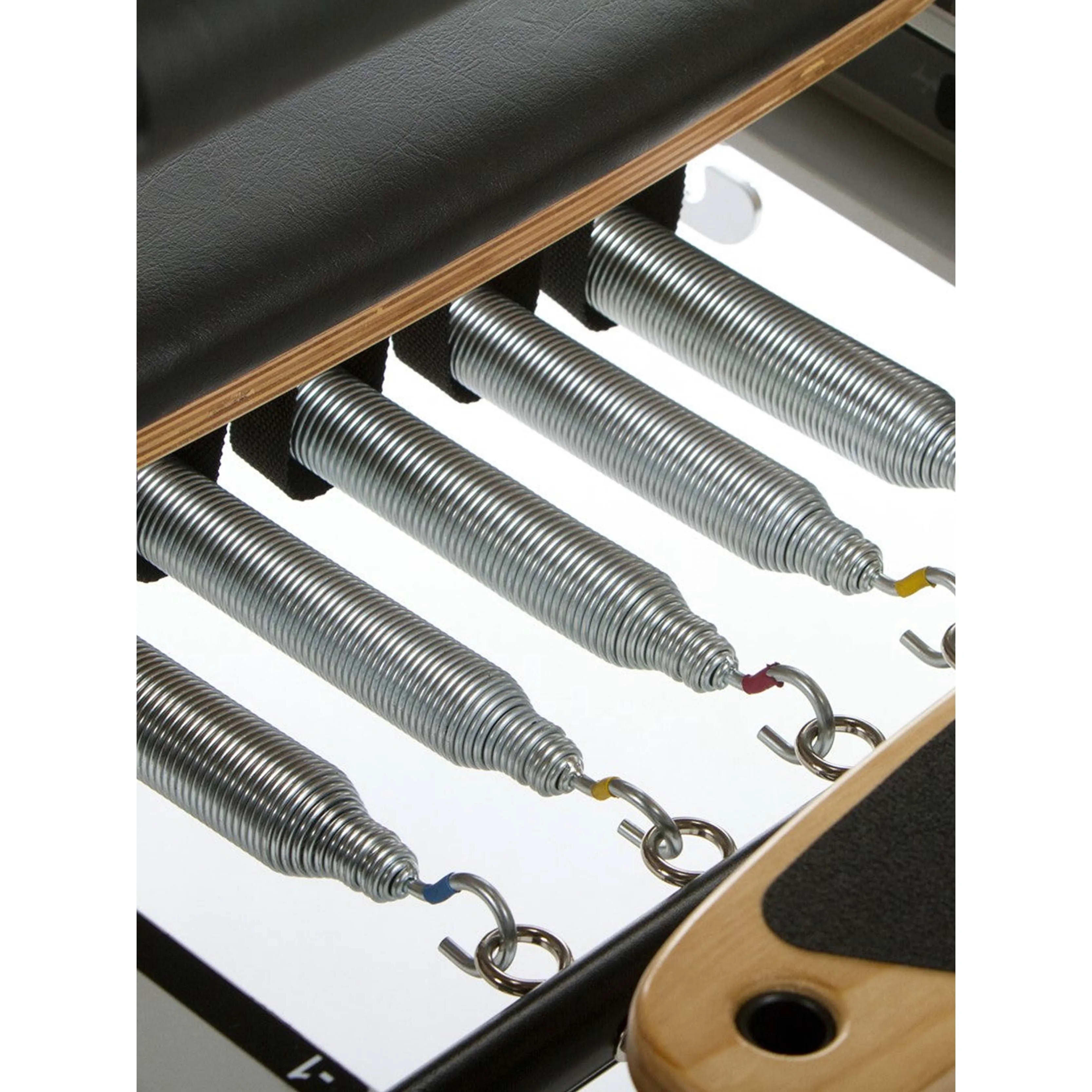 The reformer comes with a locking foot bar, a four-position one-hand gear bar, alignment graphics for the student and instructor, as well as an integrated side-split platform with the option to add a jump board. A Peak Pilates® reformer also never compromises on quality or performance for innovation.