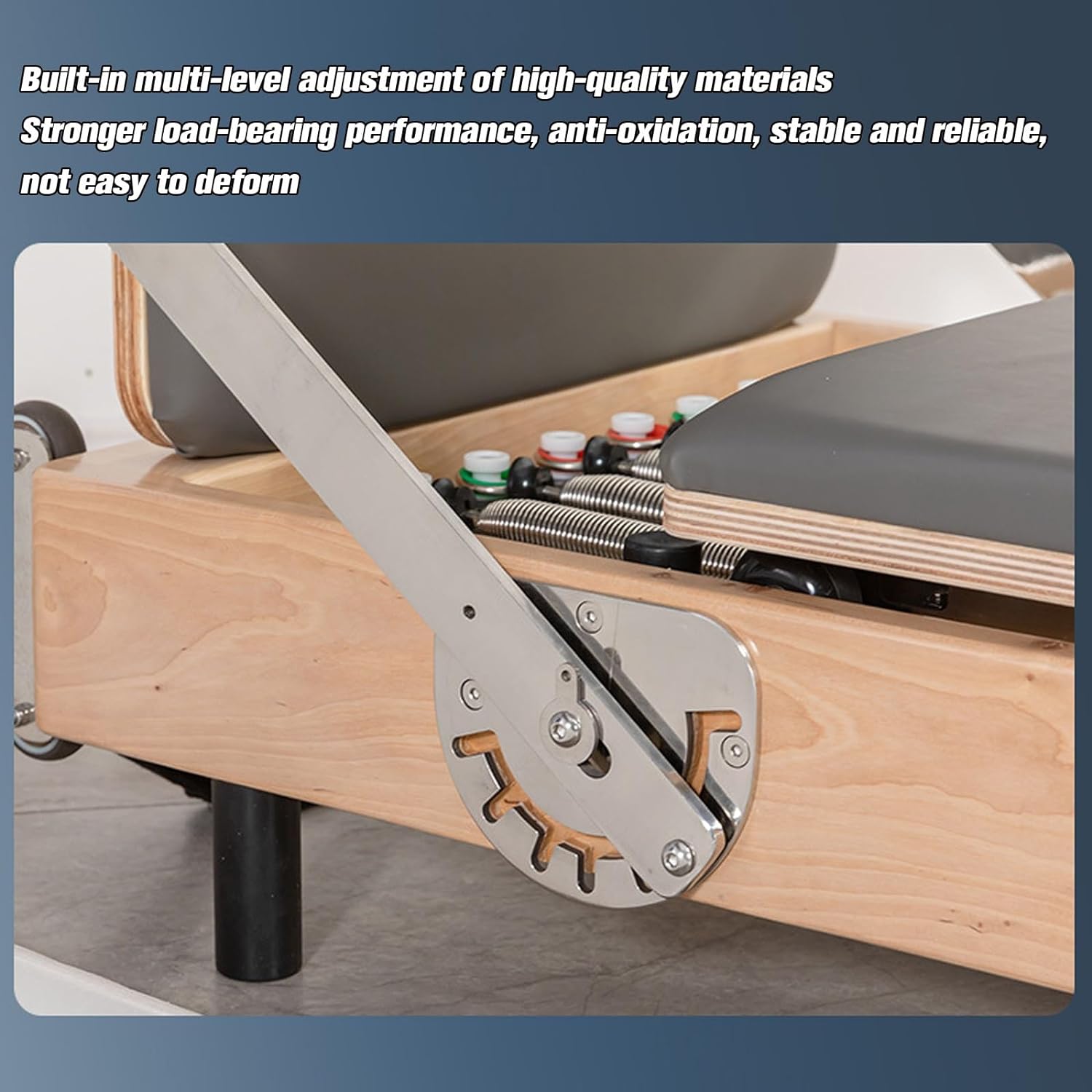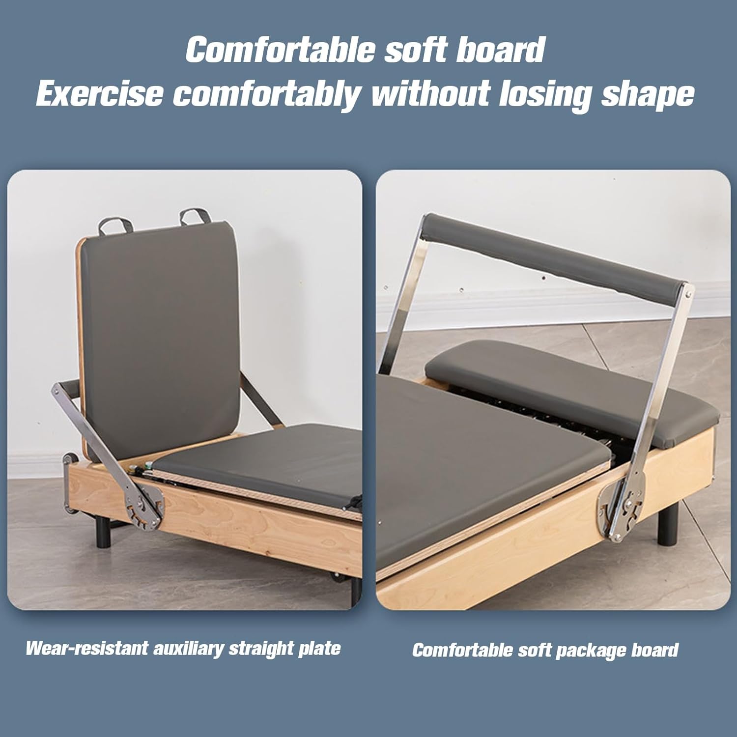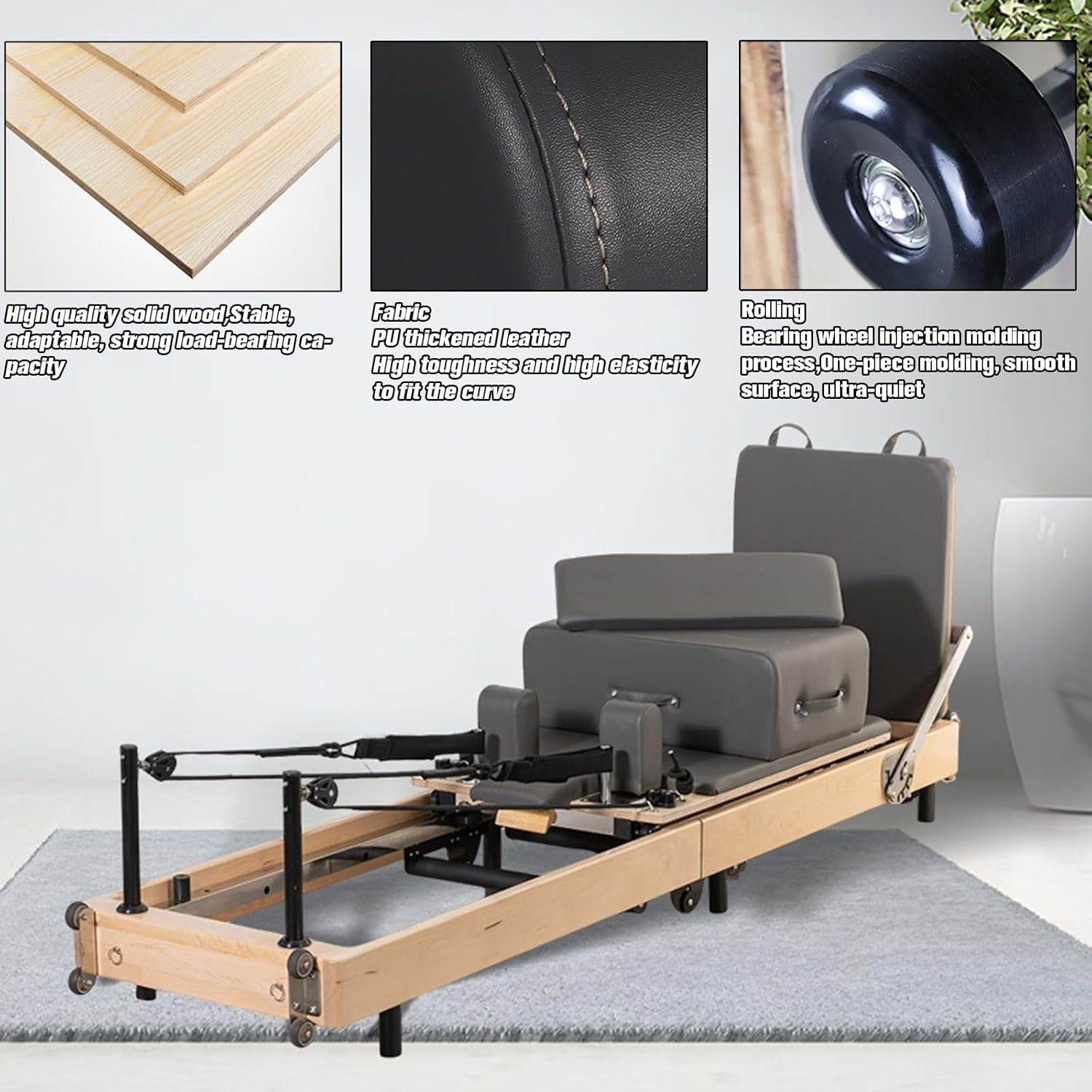 - 【High Quality reformer pilates machine wooden】The Pilates studio machine is made of wooden frame and components, ensuring higher load-bearing capacity and resistance to deformation. The saddle bag is made of PU thickened leather and elastic high-density sponge, which is durable. Great for strength training, conditioning and improving flexibility and endurance.