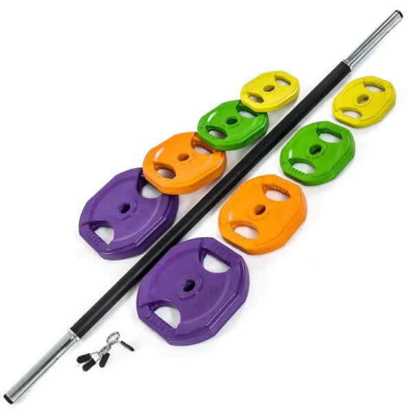 • Our Barbell Bar and Weight Set comes with a bar and 4 varying weights